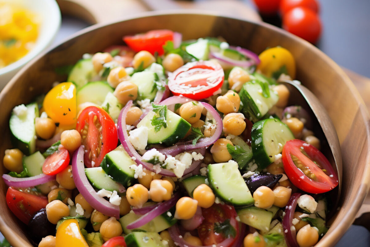 Wokad nudelsallad med friterad tofu, marinerade grönsaker, soya och pepparrot.